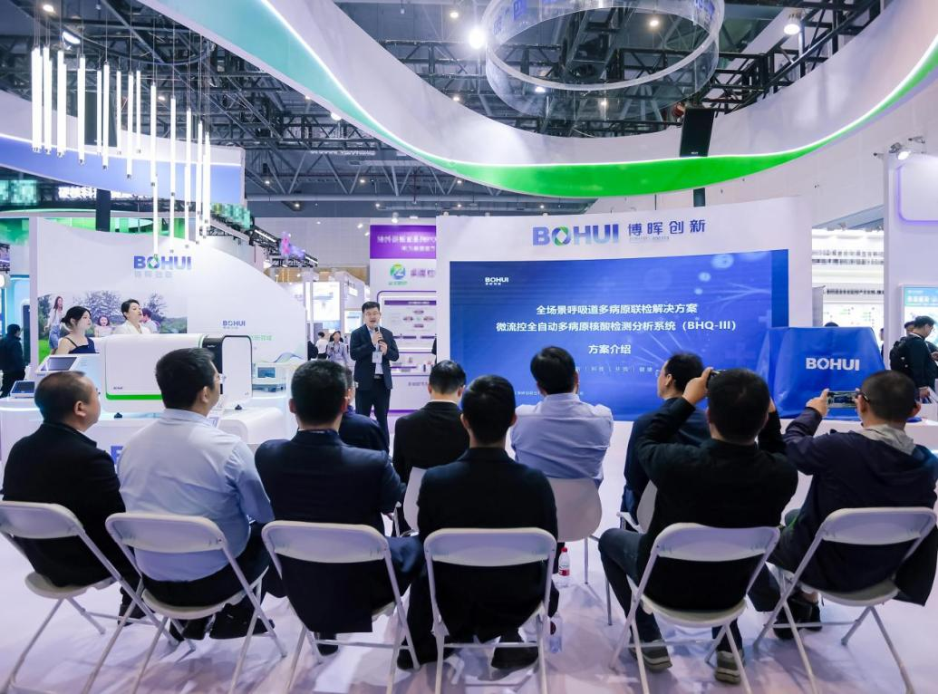 博暉創(chuàng)新全場(chǎng)景呼吸道多病原聯(lián)檢解決方案發(fā)布會(huì)于3月22日上午10點(diǎn)在3-C0903展臺(tái)圓滿召開。此次發(fā)布會(huì)匯聚了來(lái)自科技、醫(yī)療、公共衛(wèi)生等領(lǐng)域的眾多領(lǐng)導(dǎo)、專家和同仁,共同見證了博暉創(chuàng)新在分子診斷領(lǐng)域的最新成果——微流控全自動(dòng)多病原核酸檢測(cè)分析系統(tǒng)(BHQ-III)的盛大發(fā)布。